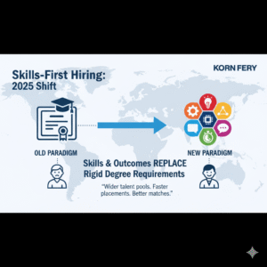 - Skills-first hiring replaces rigid degree requirements. Employers increasingly map roles to skills and outcomes rather than diplomas, speeding placements and widening candidate pools. Korn Ferry
